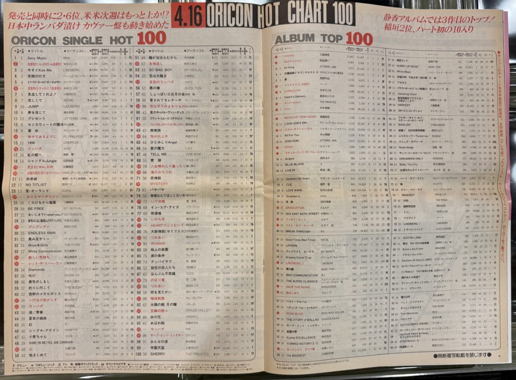 (1990年4月、FLYING KIDSのメジャーデビューシングル「幸せであるように」が初登場した時のオリコン。14位でした。)