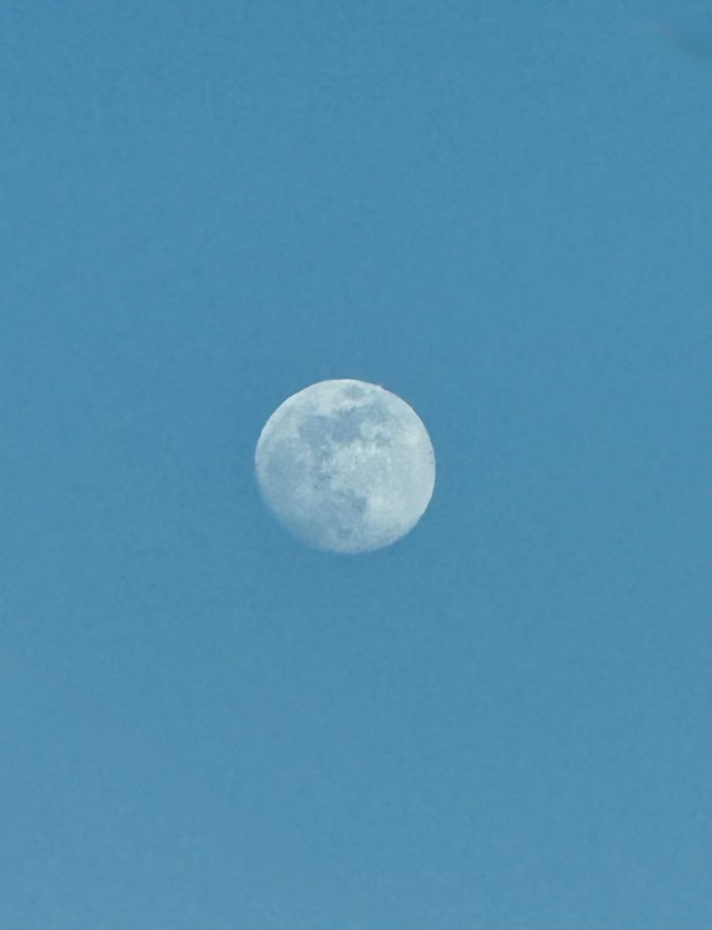 たまにタイミングが合うと、昼間でも月が見えるそうです。